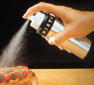 Non-aerosol spray bottle for spraying olive oil, cooking oils, flavour-infused oils, vinegars, and water.